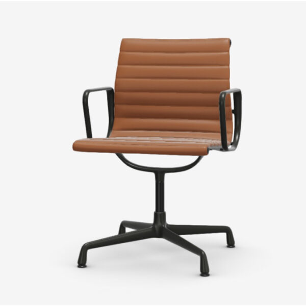 Vitra - Aluminium Chair EA 104 / Black Base / Cognac Leather