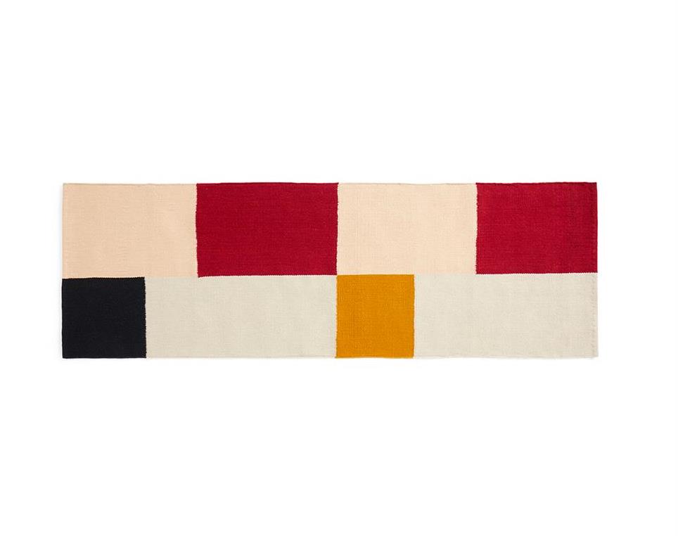 Inspired by his decorative woven wall art, Ethan Cook’s Flat Works is a series of handwoven kelim rugs designed for HAY. Featuring a geometric abstract design, the rugs translate the designer’s bold colour-blocked artwork into practical and decorative items. Crafted in a New Zealand wool-cotton blend, the dyeing and weaving processes mean that each rug varies slightly, giving them a unique, one-of-a-kind quality. Available in different sizes and colour combinations, the rugs are suitable for use in the bedroom, hallway, living room and many other interior spaces.