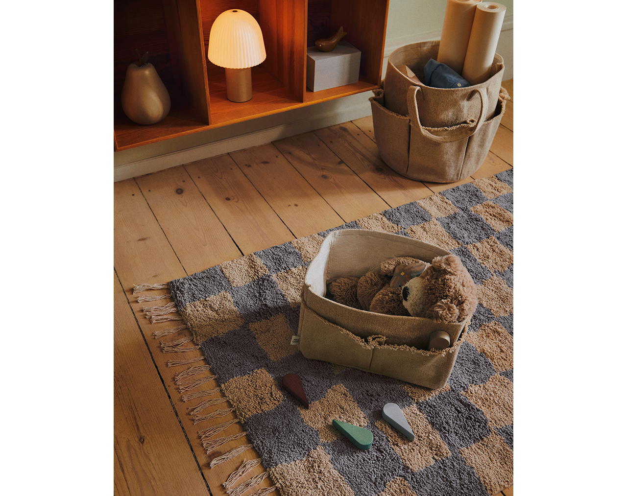 The Mara Washable Rug is a contemporary take on a classic rug with a bold checked pattern and decorative fringes. Hand tufted from GOTS certified, organic cotton, the result is a daring yet balanced design that will give any room a playful element of contrast.