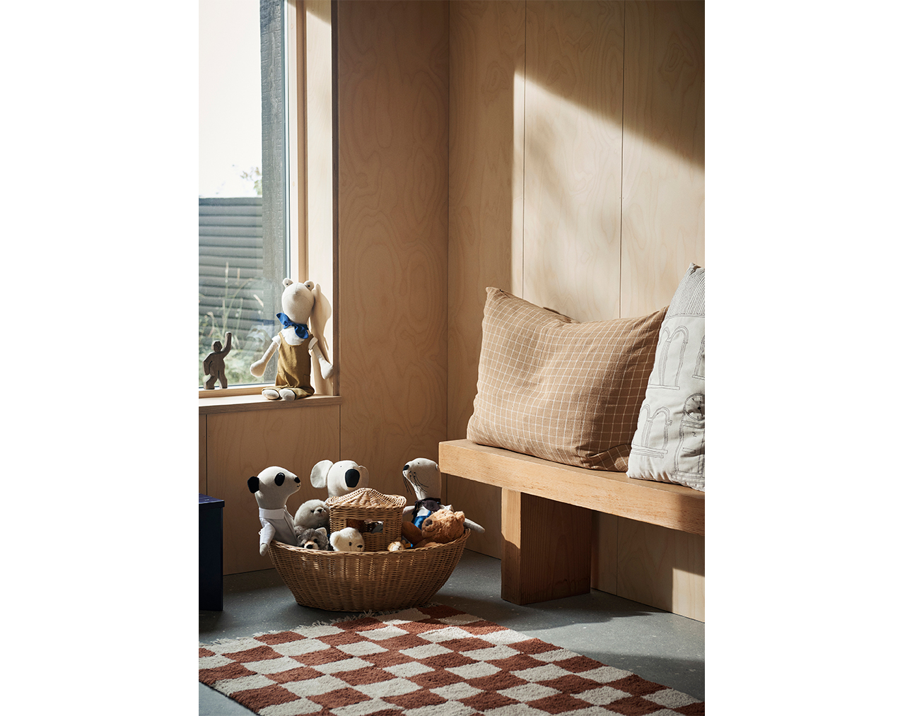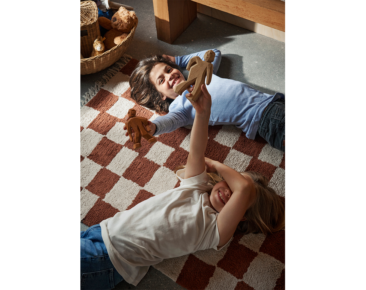 The Mara Washable Rug is a contemporary take on a classic rug with a bold checked pattern and decorative fringes. Hand tufted from GOTS certified, organic cotton, the result is a daring yet balanced design that will give any room a playful element of contrast.