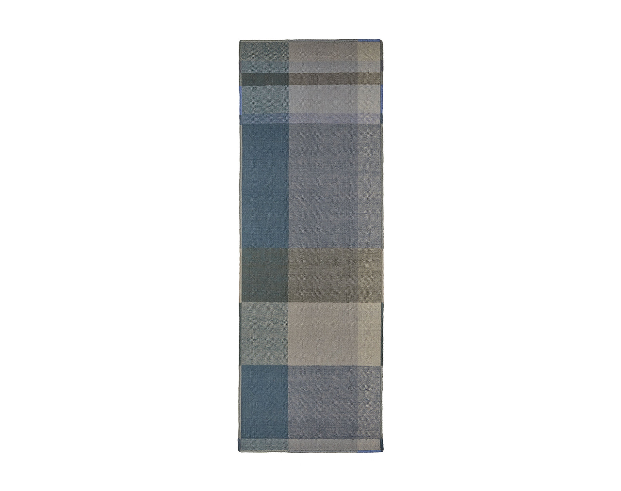 This collection presents a unique visual proposal, where a pattern of parallel and intersecting lines appears and disappears within the same color scale. The result is a monochromatic rug, yet with a depth and texture that evoke a contemporary tartan.