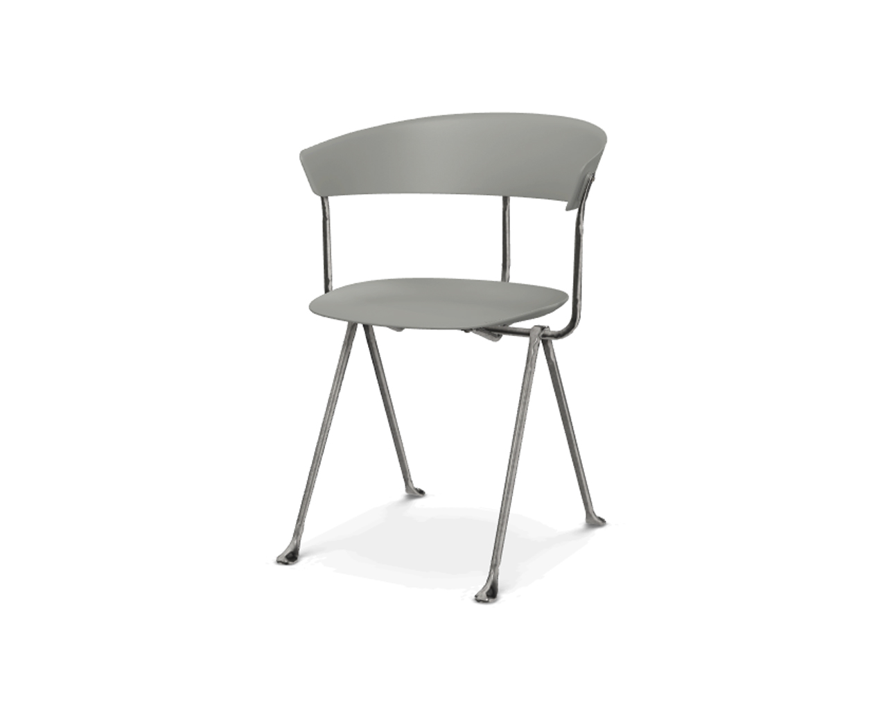 Frame in wrought iron, galvanized, painted in polyester powder or cataphoretically-treated and painted in polyester powder. Seat and back in standard injection moulded polypropylene with glass fiber added (suitable for outdoor use) or in beech plywood. Also available in polypropylene covered in premium grade leather or in fabric (Kvadrat “Divina Mélange” and “Divina MD”).