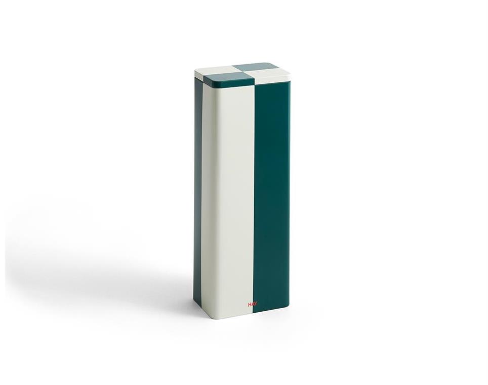 HAY’s Tin Containers are a collection of functional and decorative storage boxes featuring colourful checked patterns and a glossy finish. The lid and container are smoothly aligned, creating a sleek, seamless appearance, whilst ensuring an airtight fit that is suitable for dry food storage. Available in a wide assortment of sizes, shapes and designs, the Tin Container can be placed decoratively on shelves or tables around the home for storing and organising different items.