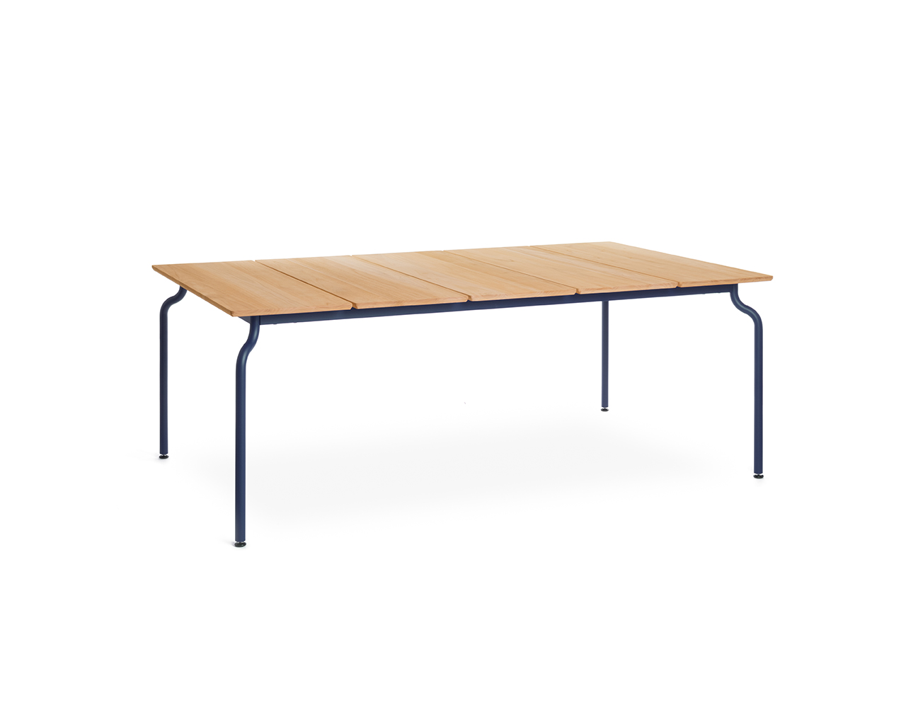 Material: Frame in steel tube, cataphoretically treated and painted in polyester powder. Top in teak. Adjustable and pivoting feet. Suitable for outdoor use
