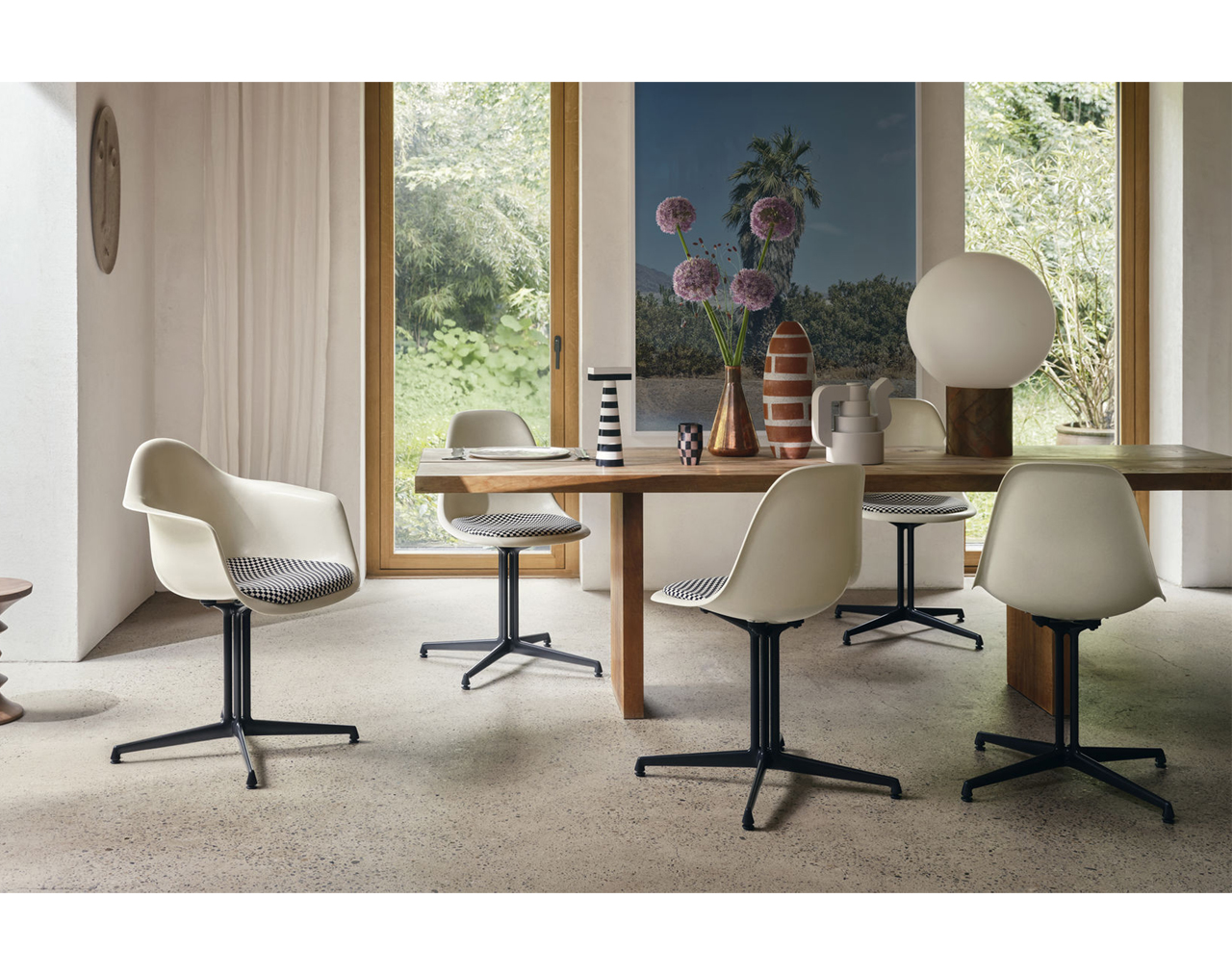 Eames Fiberglass Armchair DAL / Eames Parchment / Black-White Checker / Black Base