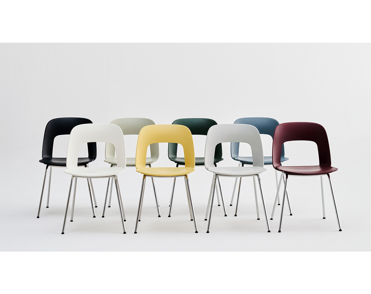 Designed by Julien Renault, Layout Chair 111 offers a flexible and innovative design shaped by a commitment to comfort, functionality, and circularity. Characterised by the opening in the backrest, this defining feature provides greater comfort while giving its appearance a sense of lightness and transparency. Featuring slim tubular legs that combine stability with an elegant aesthetic, all chair components can be fully disassembled to extend its lifespan and enable refurbishment for long-term use. The shell and seat are crafted from a minimum of 96% post-consumer recycled plastic and offered in a wide range of colours, with the frame available with a chrome or powder coated finish, making Layout a versatile and durable seating solution ideal for offices, restaurants, public institutions, and domestic settings.