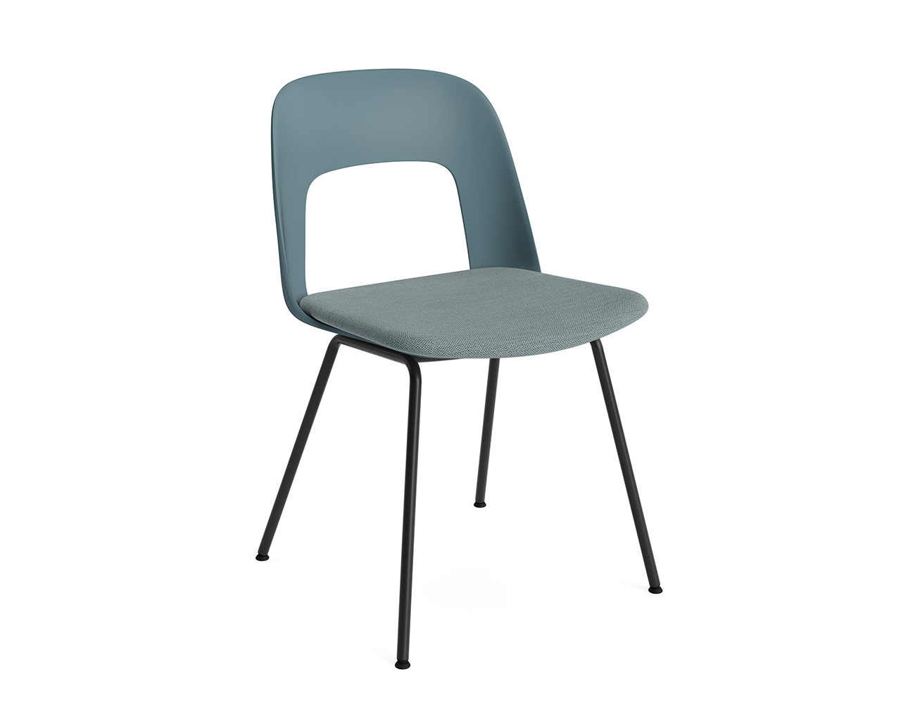 Designed by Julien Renault, Layout Chair 113 offers a flexible and innovative design shaped by a commitment to comfort, functionality, and circularity. Characterised by the opening in the backrest, this defining feature provides greater comfort while giving its appearance a sense of lightness and transparency. Featuring an upholstered seat for a warm, inviting expression and slim tubular legs that offer both stability and elegance, all chair components can be fully disassembled to extend its lifespan and enable refurbishment for long-term use. The shell is crafted from a minimum of 96% post-consumer recycled plastic and offered in a wide range of colours. The frame comes in either a chrome or powder coated finish, with the upholstered seat available in a variety of fabric and olive-leaf tanned leather options, making Layout a versatile and durable seating solution ideal for offices, restaurants, public institutions, and domestic settings.