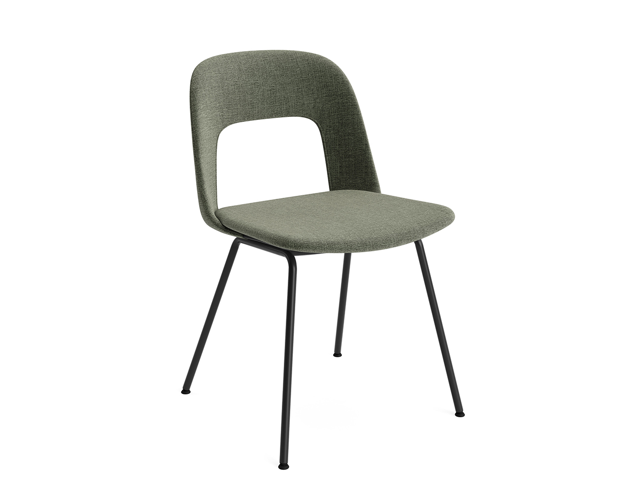 Designed by Julien Renault, Layout Chair 114 offers a flexible and innovative design shaped by a commitment to comfort, functionality, and circularity. Characterised by the opening in the backrest, this defining feature provides greater comfort while giving its appearance a sense of lightness and transparency. Featuring an upholstered seat and back for a warm, inviting expression and slim tubular legs that offer both stability and elegance, all chair components can be fully disassembled to extend its lifespan and enable refurbishment for long-term use. The shell is crafted from a minimum of 96% post-consumer recycled plastic, with a chrome or powder coated frame and an upholstered seat and back available in a variety of fabric and olive-leaf tanned leather options, making Layout a versatile and durable seating solution ideal for offices, restaurants, public institutions, and domestic settings.