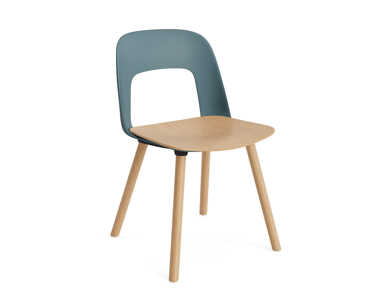 Designed by Julien Renault, Layout Chair 122 offers a flexible and innovative design shaped by a commitment to comfort, functionality, and circularity. Characterised by the opening in the backrest, this defining feature provides greater comfort while giving its appearance a sense of lightness and transparency. A plywood seat brings natural warmth, while rounded wooden legs provide stability and a timeless appeal, with all components designed for disassembly to extend the lifespan and enable refurbishment for long-term use. The shell is crafted from a minimum of 96% post-consumer recycled plastic and offered in a wide range of colours, with the seat offered in the same wood type and finish options as the base, making Layout a versatile and durable seating solution ideal for offices, restaurants, public institutions, and domestic settings.