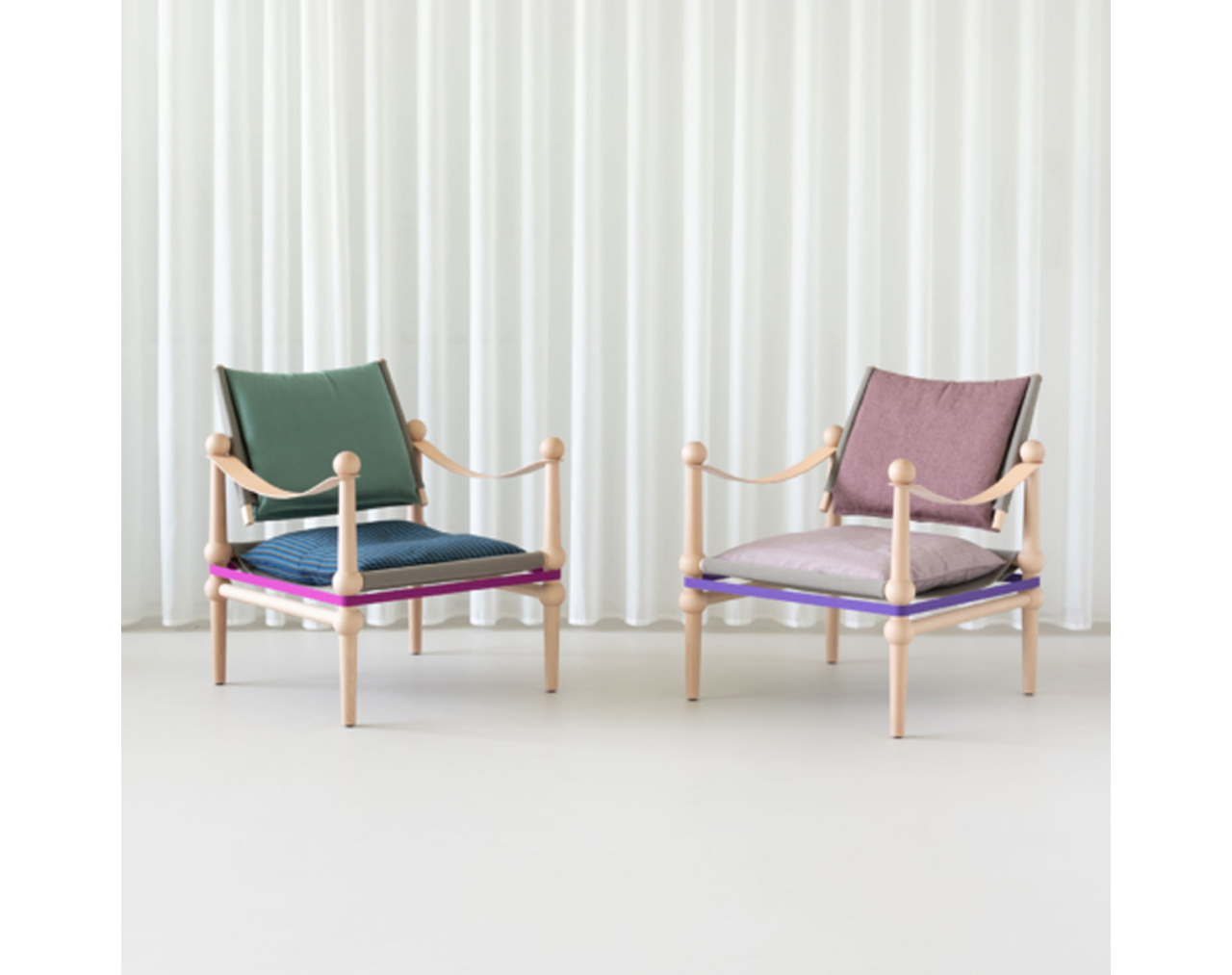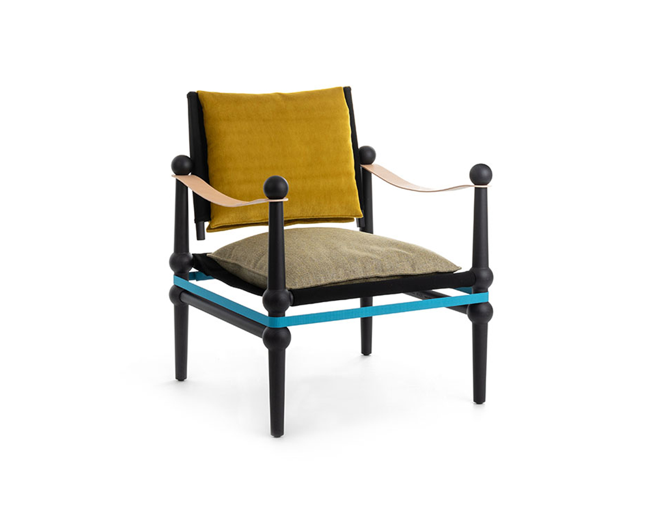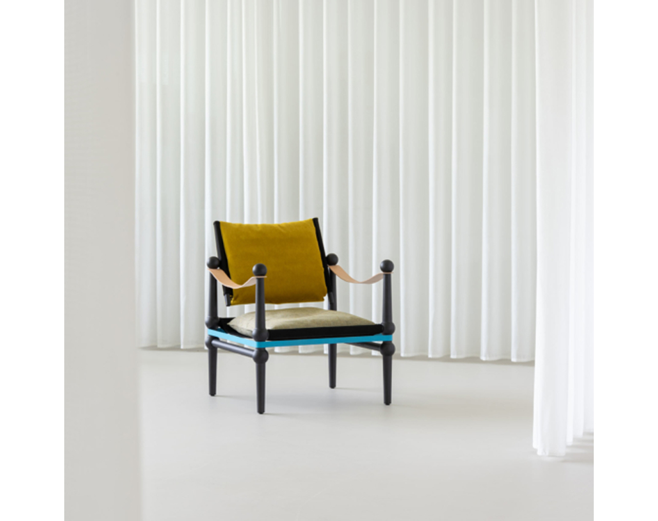 Material: Arms in natural premium grade leather., Frame in solid beech, stained natural or aniline dyed black, Seat and back in selfbearing fabric, seat cushion and back cover in removable fabric., Tension belt in polyamide. Felt pads included.