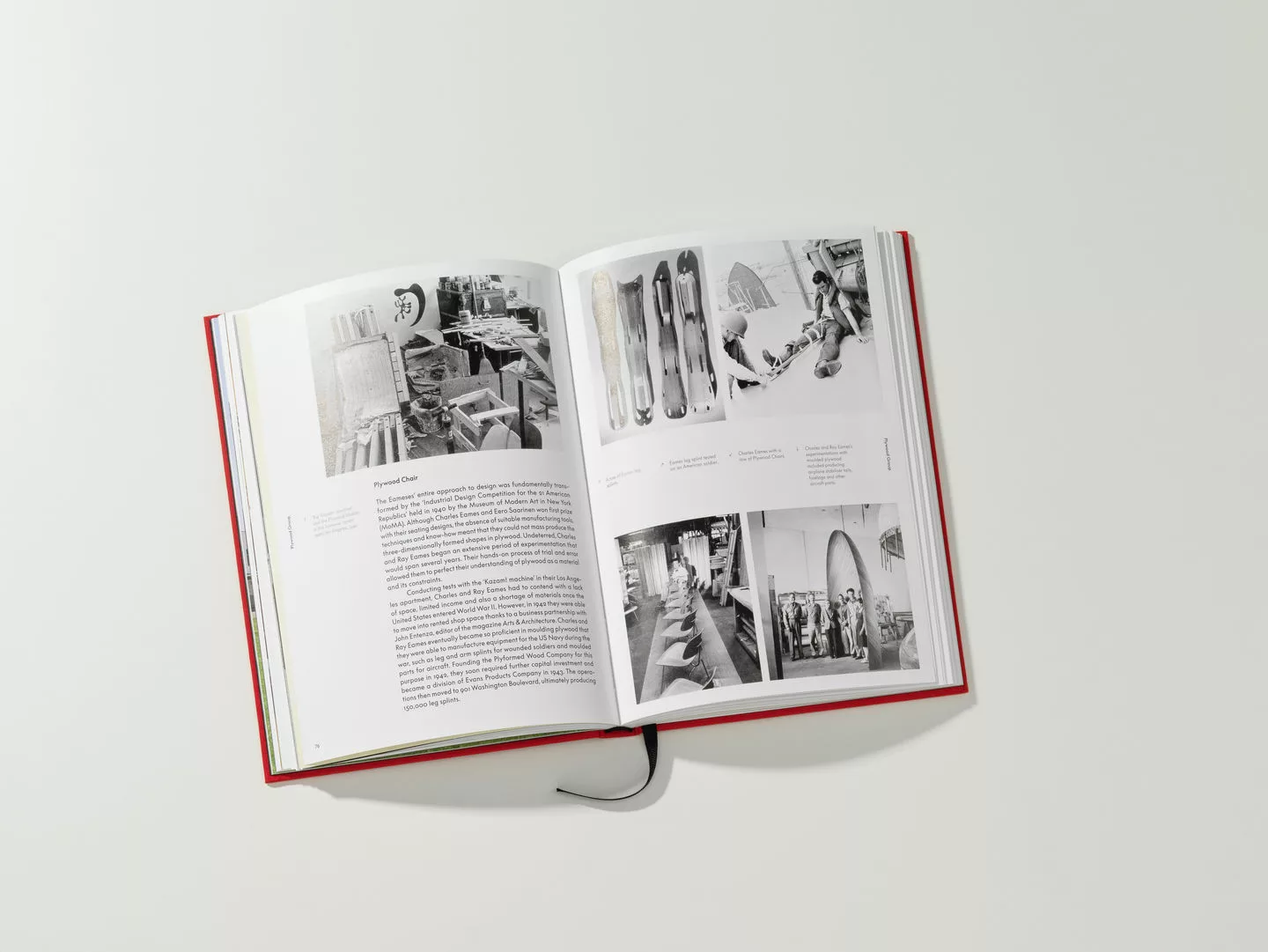 The book is subdivided into three thematic parts: the story of Eames & Vitra with new details; the Eames products produced by Vitra with exciting background information; and historical photography with current Home, Office, and Public imagery.