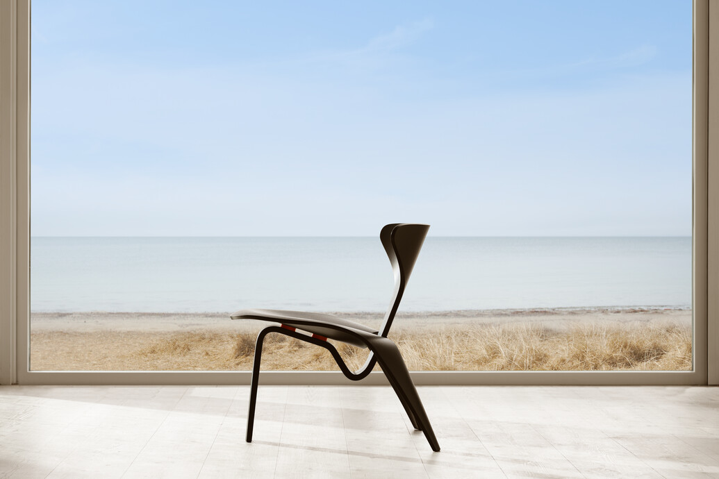 Poul Kjærholm’s one-of-a-kind PK0 A™ chair was designed in 1952, at the very beginning of the Danish designer’s tenure at Fritz Hansen. Highlighting the range of his talent as a furniture designer, the curved chair – now reissued in Oregon pine or black coloured ash with cinnabar red spacers – is a functional sculpture and a seminal piece of modern design history.