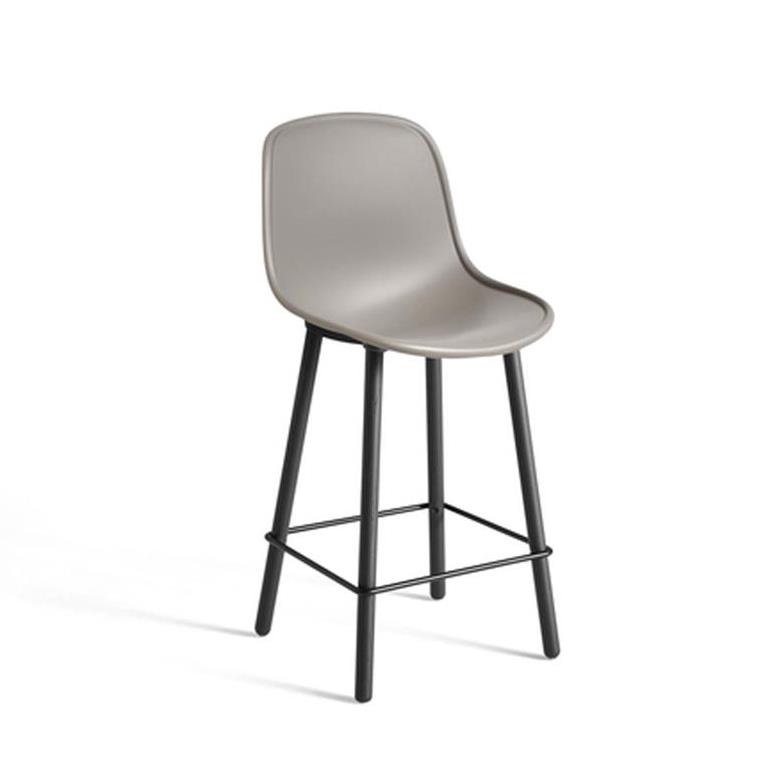 Neu12 Bar Stool High Soft Black Water Based Lacquered Solid Oak Mud Grey Polypropylene Shell