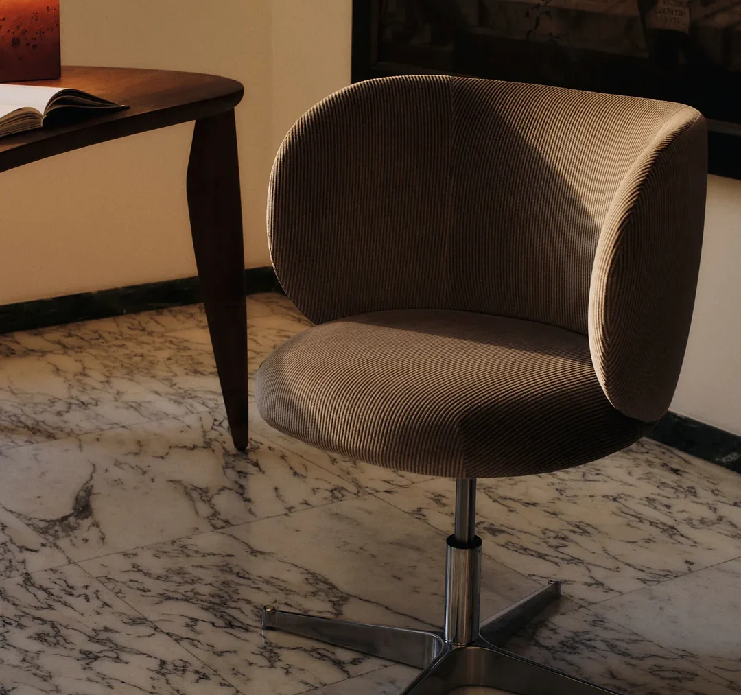 The Rico collection welcomes curves and volumes into a classic design defined by soft lines and an embracing expression. Featuring a functional swivel as the base, the Rico Dining Chair presents a refined addition to the Rico family. Place it around the dining table and offer your guests a comfortable, inviting seat during long dinner parties, or use it as a desk chair in your own home or at the office.