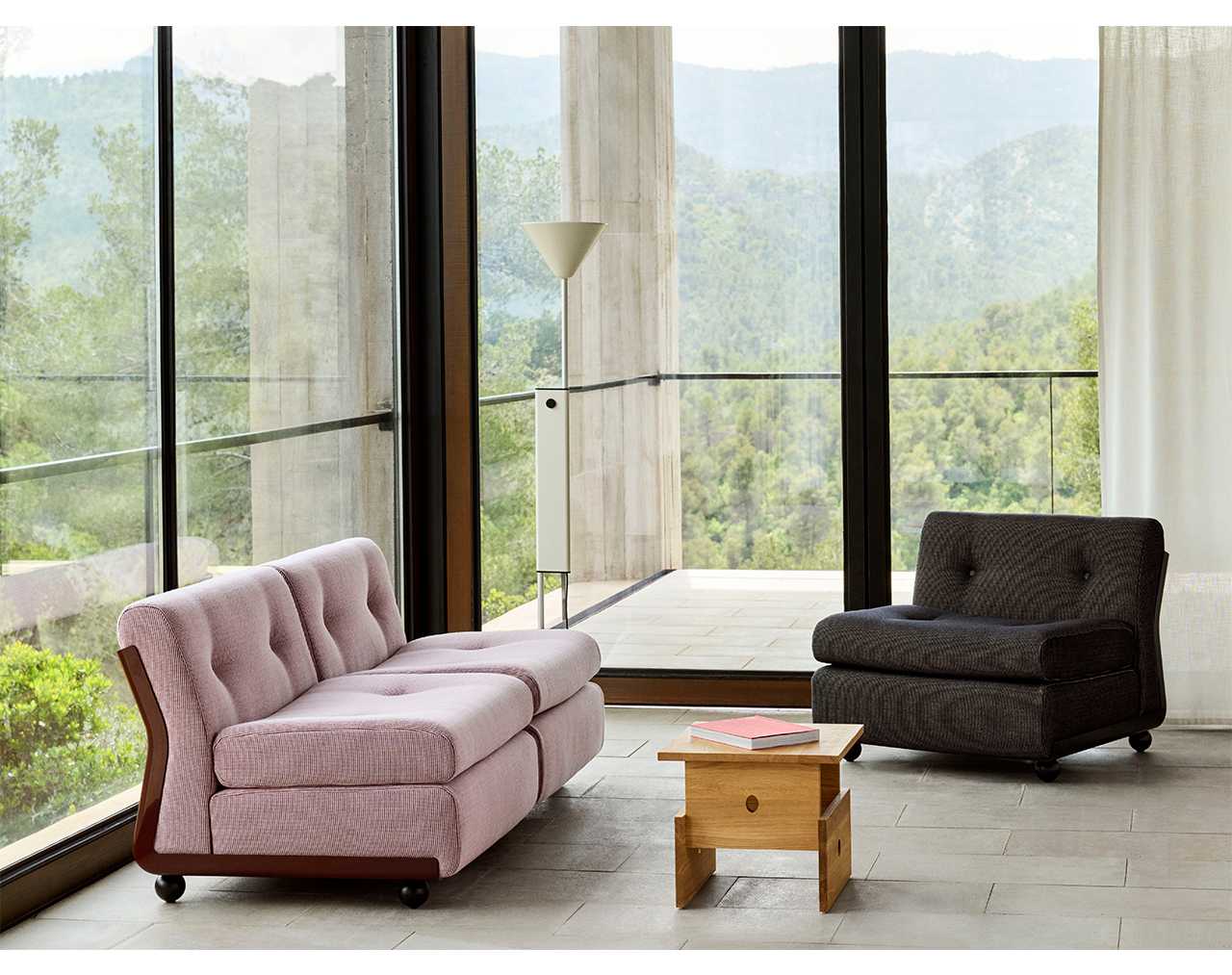 Originally designed by Mario Bellini in 1966 and reissued by HAY, Amanta Sofa embodies the essence of innovative mid-century Italian design. A modular seating solution defined by its sculptural design and organic, low-slung silhouette, Amanta continues to stand out for its timeless ingenuity. With modular units that work alone or together, the sofa’s flexible design is an example of the designer’s multidisciplinary expertise in form and function. Crafted with architectural precision from at least 99% post-consumer recycled ABS, the shell is complemented by 94% biomass-balanced foam cushions that deliver ergonomic support, with all components designed for disassembly. Amanta’s enduring aesthetics and ability to adapt to interior spaces make it a versatile choice for a wide range of domestic and public settings. Available in different shell colours with a variety of fabric and leather upholstery options as a single module or in pre-configured 2-, 3-, or 4- module seater variants.