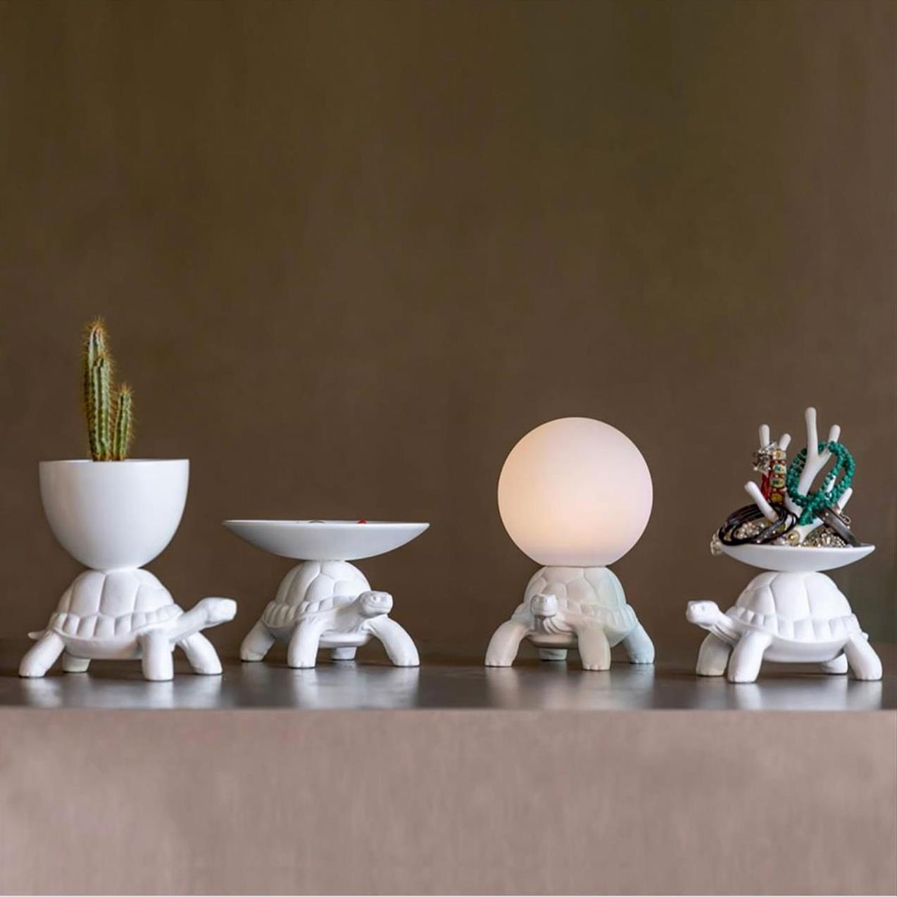 Turtle Carry Pouf, designed by Marcantonio, carries on its carapace a soft cushion that can function as a seat, footrest, or an additional tabletop. For your moments of relax!