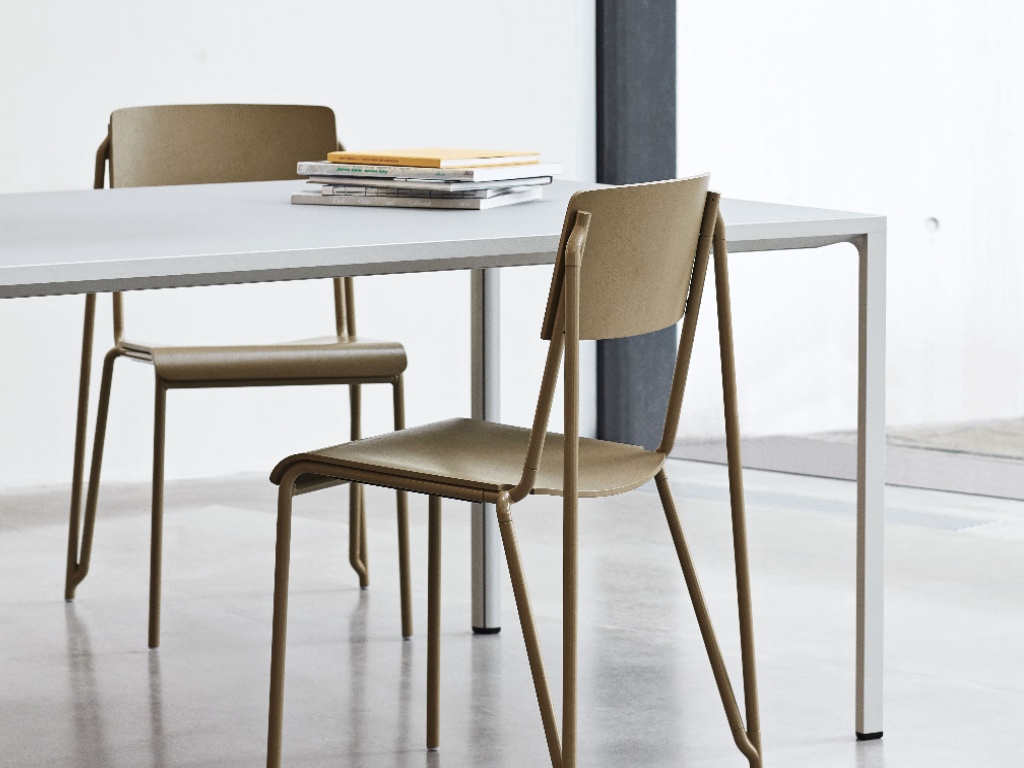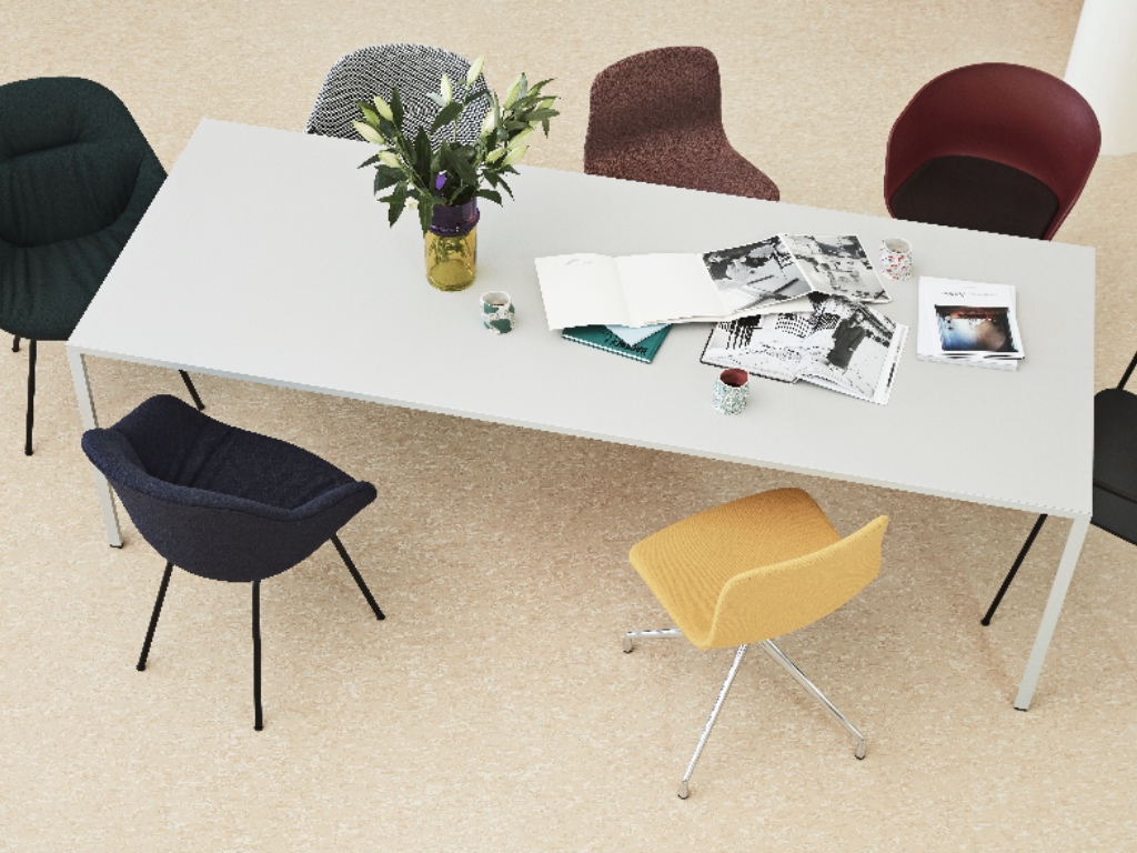 Featuring a simple construction in long-lasting materials, the New Order Table is suitable for use as both a dining table and a meeting table in an office environment. With a light, durable aluminium frame and linoleum table top in different colour options, the table combines functional and aesthetic qualities in a versatile table design. Adaptable to a wide range of workspace applications, the table’s framework can be supplemented with cable management solutions, dividers and other components to improve functionality and organisation. Double leg profiles allow the establishment of larger set-ups with multiple tables, creating infinite combinations.
