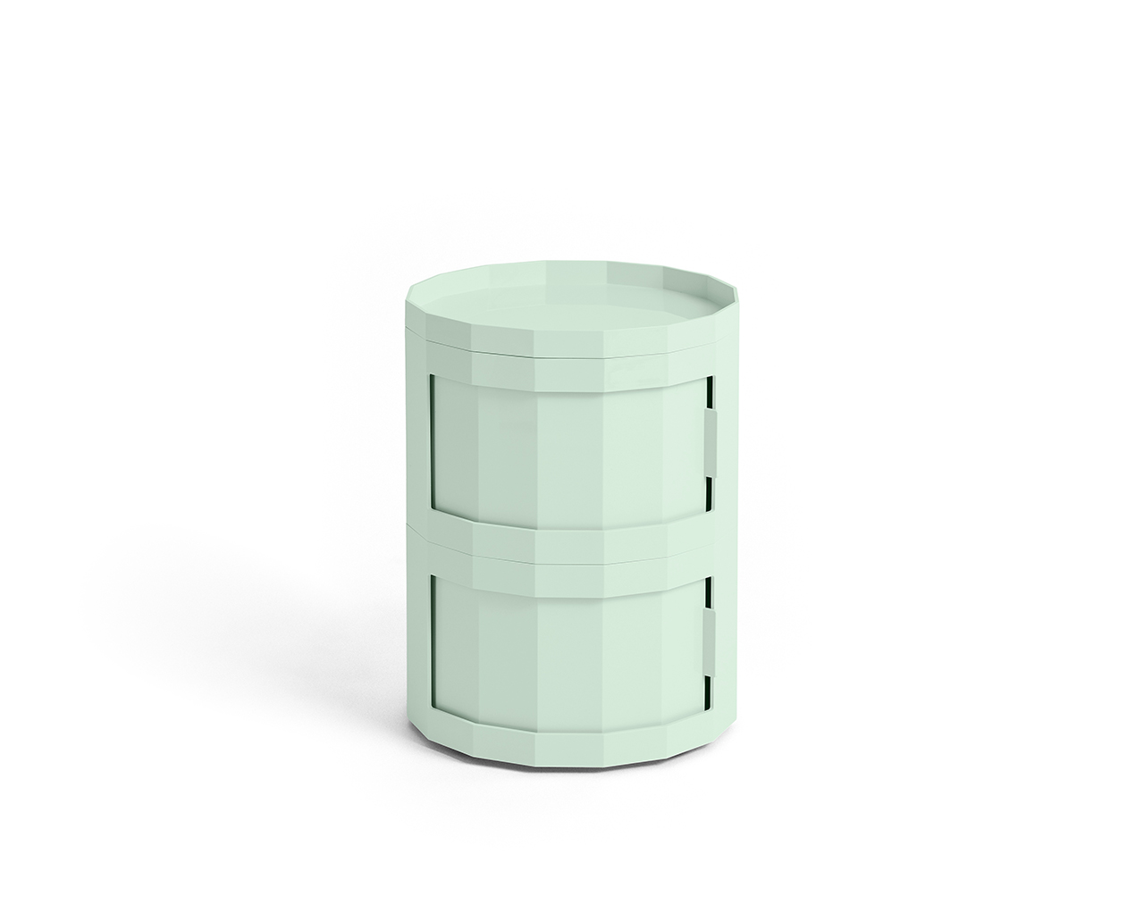 Designed for HAY by Dutch designer Stefan Scholten, the Facet Cabinet is a multifunctional storage solution that’s easy to move around. With its revolving integrated door and discreet wheels, it adapts effortlessly to a variety of settings. Made from at least 30% post-consumer recycled ABS, Facet comes in a range of models, colours, and heights. Ideal for organising and tidying everyday items, its versatile design works equally well as a bedside cabinet, side table, or home office organiser.