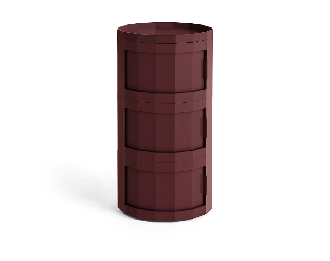 Designed for HAY by Dutch designer Stefan Scholten, the Facet Cabinet is a multifunctional storage solution that’s easy to move around. With its revolving integrated door and discreet wheels, it adapts effortlessly to a variety of settings. Made from at least 30% post-consumer recycled ABS, Facet comes in a range of models, colours, and heights. Ideal for organising and tidying everyday items, its versatile design works equally well as a bedside cabinet, side table, or home office organiser.