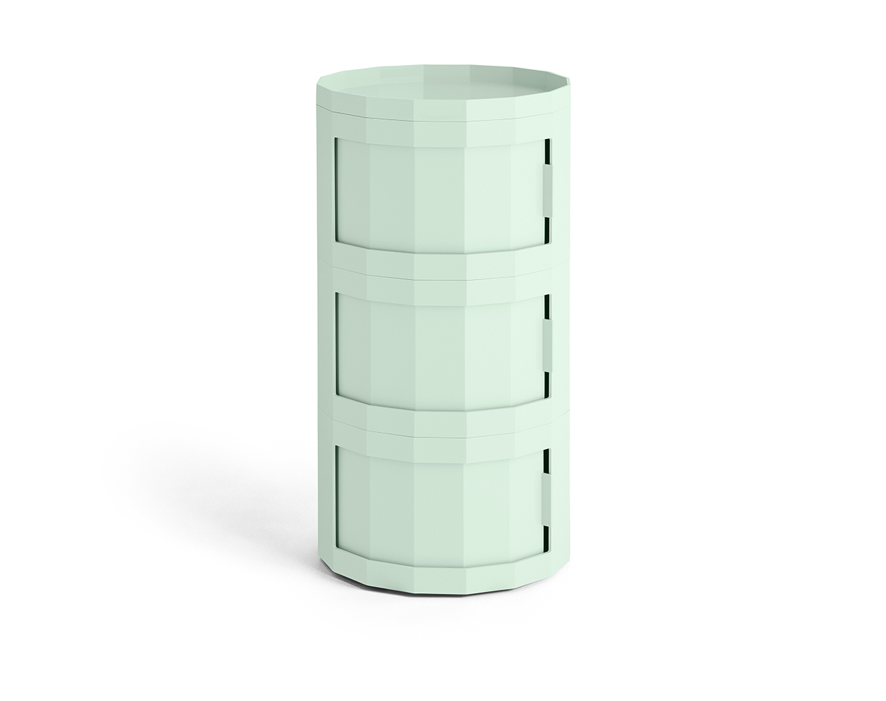 Designed for HAY by Dutch designer Stefan Scholten, the Facet Cabinet is a multifunctional storage solution that’s easy to move around. With its revolving integrated door and discreet wheels, it adapts effortlessly to a variety of settings. Made from at least 30% post-consumer recycled ABS, Facet comes in a range of models, colours, and heights. Ideal for organising and tidying everyday items, its versatile design works equally well as a bedside cabinet, side table, or home office organiser.