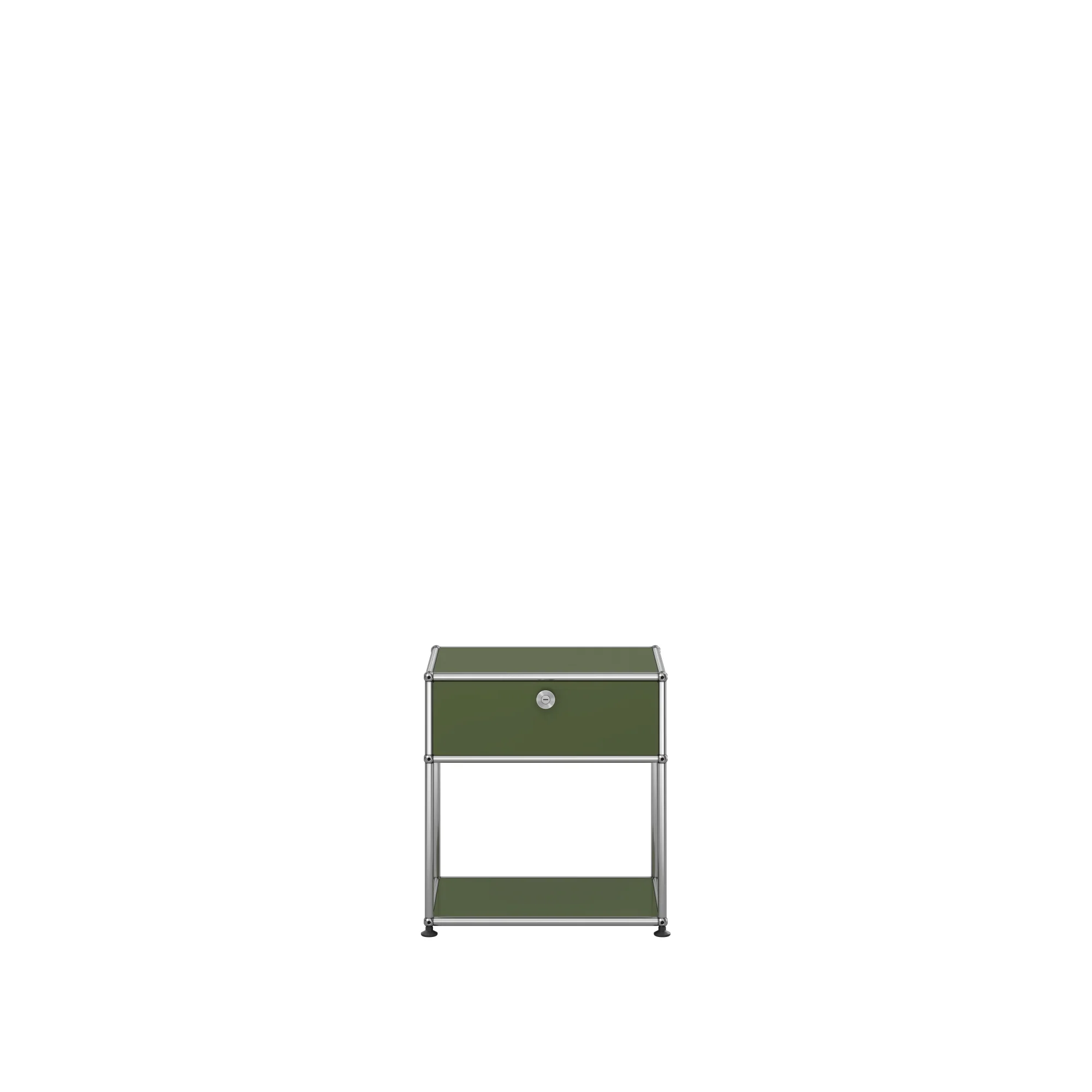 Haller is a bedside table designed by Fritz Haller & Paul Schärer for the USM brand. The Haller bedside table is an icon of modern design and timeless functionality. Part of the prestigious Haller collection, this bedside table is distinguished by its chrome-plated steel frame and powder-coated panels, available in a wide range of finishes to suit every style and preference. The strength of the Haller collection lies in its versatility and customisation. Each element is designed to offer maximum flexibility, allowing anyone to create unique compositions to suit their needs. Haller thus becomes an ideal companion for any home or contract space, adding a touch of elegance and practicality. The chrome-plated steel frame gives the Haller bedside table a timeless solidity, while the powder-coated panels add a contemporary touch.