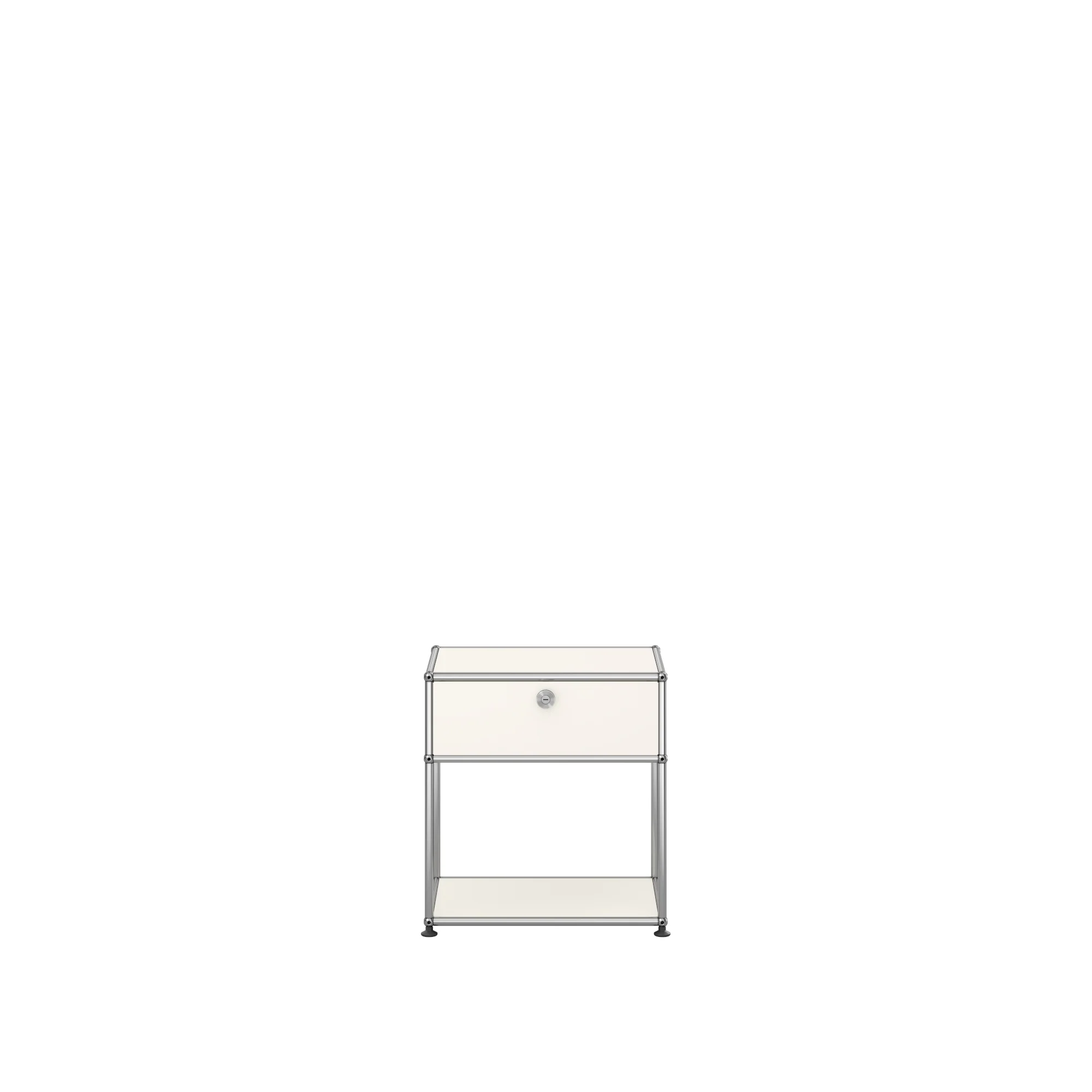 Haller is a bedside table designed by Fritz Haller & Paul Schärer for the USM brand. The Haller bedside table is an icon of modern design and timeless functionality. Part of the prestigious Haller collection, this bedside table is distinguished by its chrome-plated steel frame and powder-coated panels, available in a wide range of finishes to suit every style and preference. The strength of the Haller collection lies in its versatility and customisation. Each element is designed to offer maximum flexibility, allowing anyone to create unique compositions to suit their needs. Haller thus becomes an ideal companion for any home or contract space, adding a touch of elegance and practicality. The chrome-plated steel frame gives the Haller bedside table a timeless solidity, while the powder-coated panels add a contemporary touch.