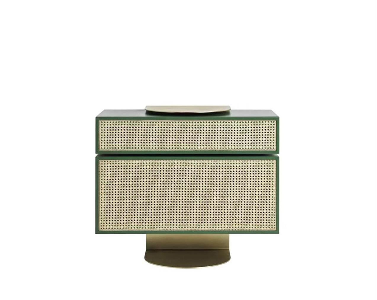 NYNY drawers is a storage unit made of wood and woven cane formed by two overlapping volumes, a low drawer and a high chest of drawers to be fixed to the wall thanks to the metal structure with satin brass finish. Together with the totemic storage unit and the sideboard, NYNY drawers is part of the NYNY family of storage units, a multifaceted design by storagemilano, in an interdependence of design, architecture, and art, also accentuated by the intense colour scheme.