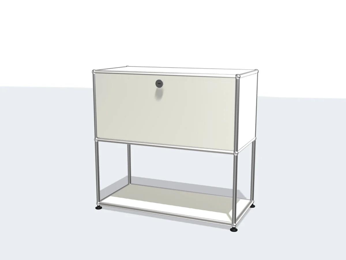 Haller is a storage unit with an open lower structure and one drop-down door. Haller is a collection designed by Fritz Haller & Paul Schärer for the USM brand