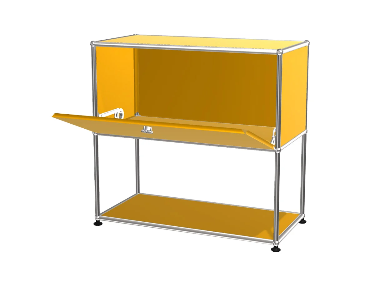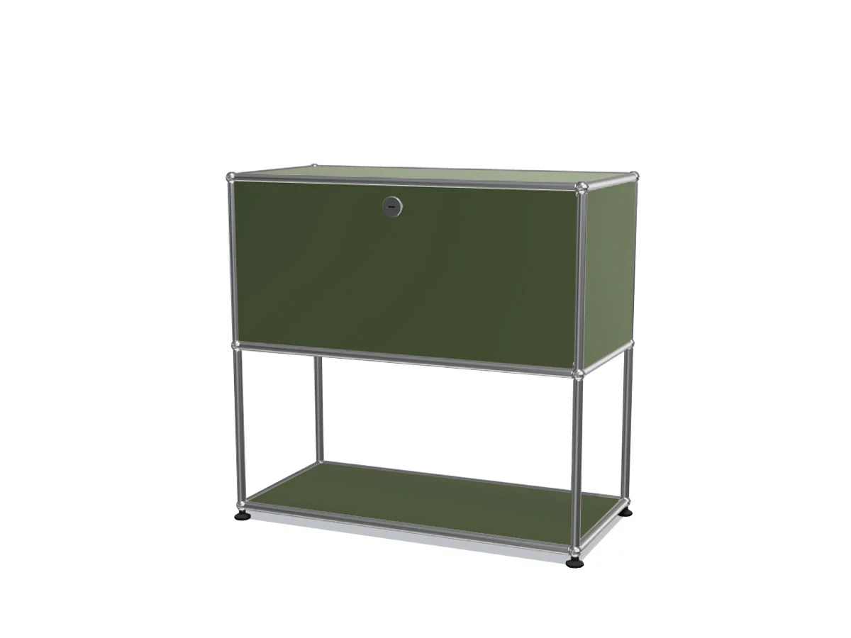 Haller is a storage unit with an open lower structure and one drop-down door. Haller is a collection designed by Fritz Haller & Paul Schärer for the USM brand