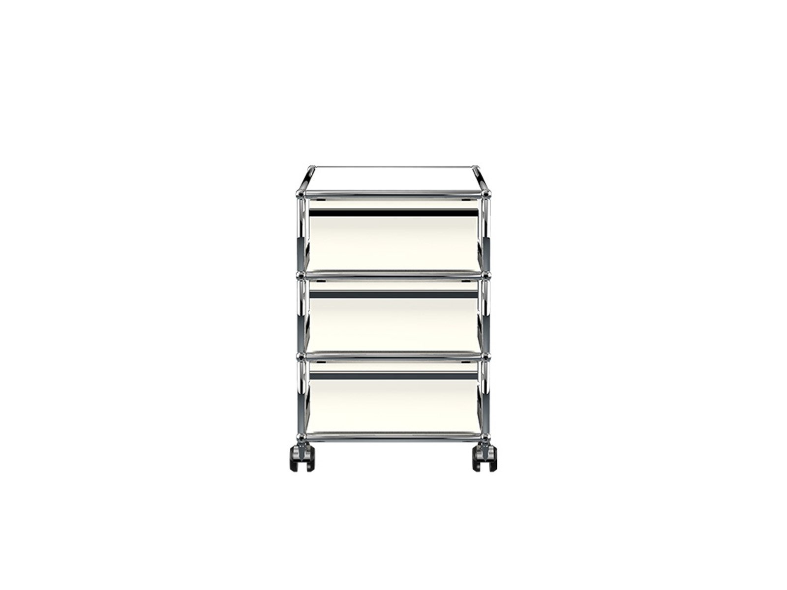 Practical, innovative and functional, this storage trolley is part of the timeless USM Haller Collection. Chromed tubular structure and painted panels available in several colors