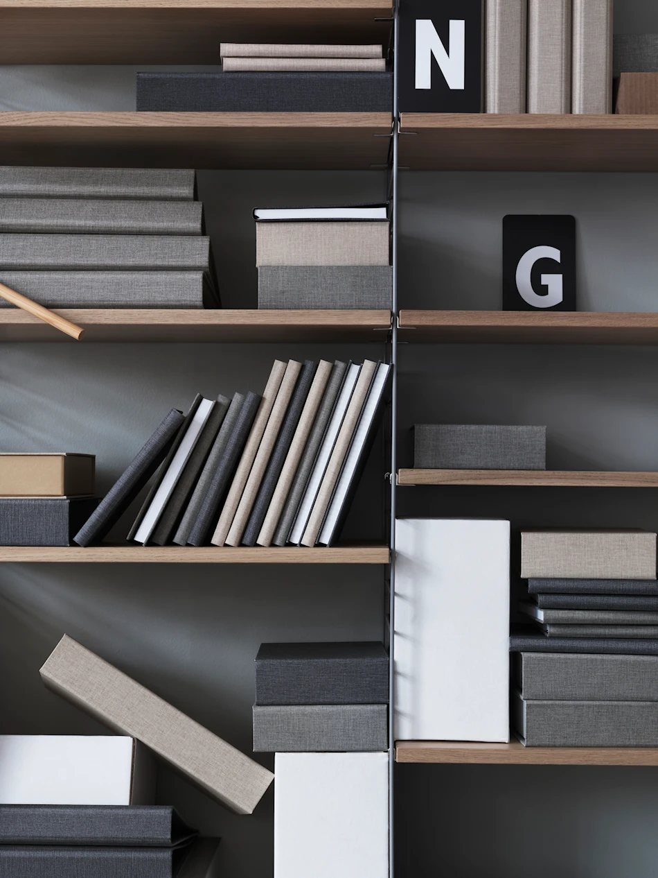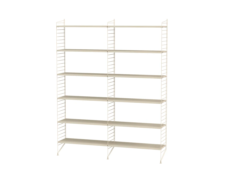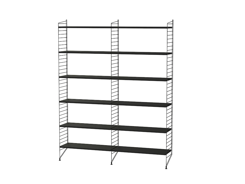 This String Furniture bundle is a large sized combination that’s got it all, perfect for the living area. Display your most beloved objects and books on the shelves, magazines on the tilted shelf, and hide away your less desirable items in the cabinet.