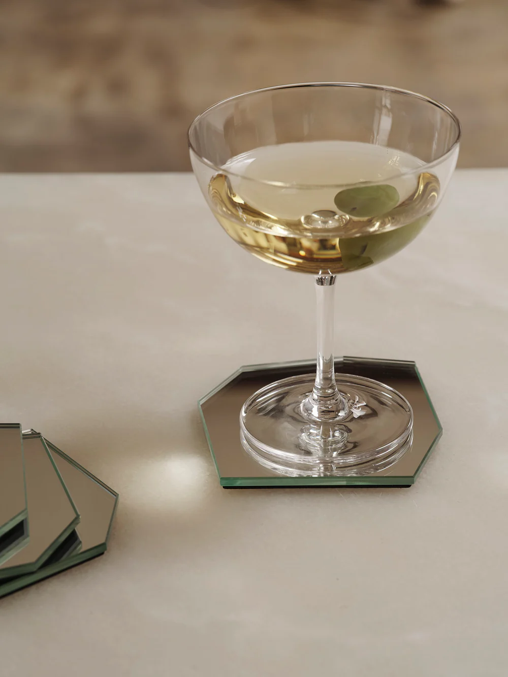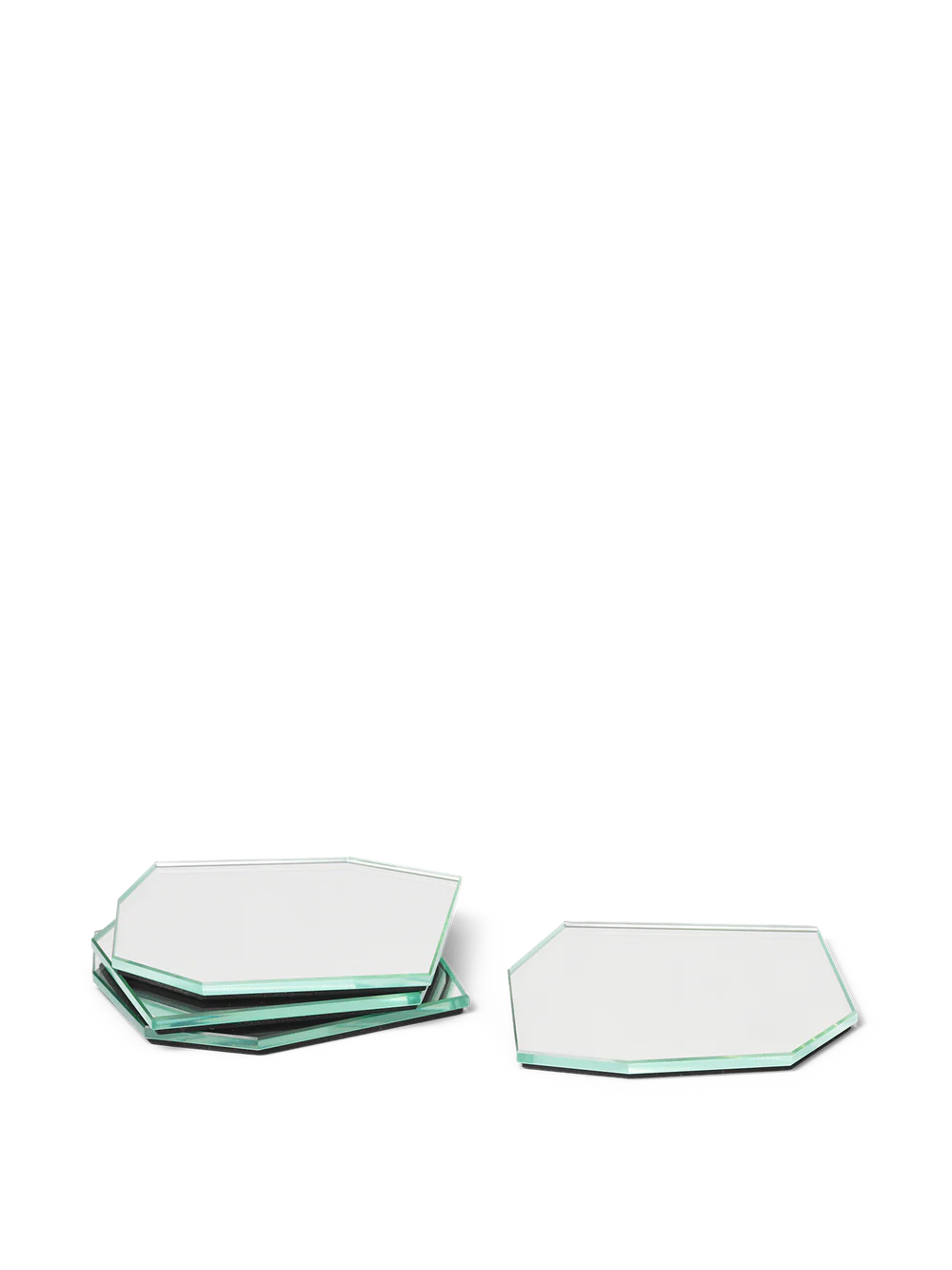 Crafted from glass leftovers from the production of our Shard Mirror, the Shard Coasters are inspired by the raw, edgy beauty of fragmented ceramics, glass, and rock. These asymmetrical pieces offer practical protection for your table and exude effortless elegance, making them the ideal companions for gatherings.