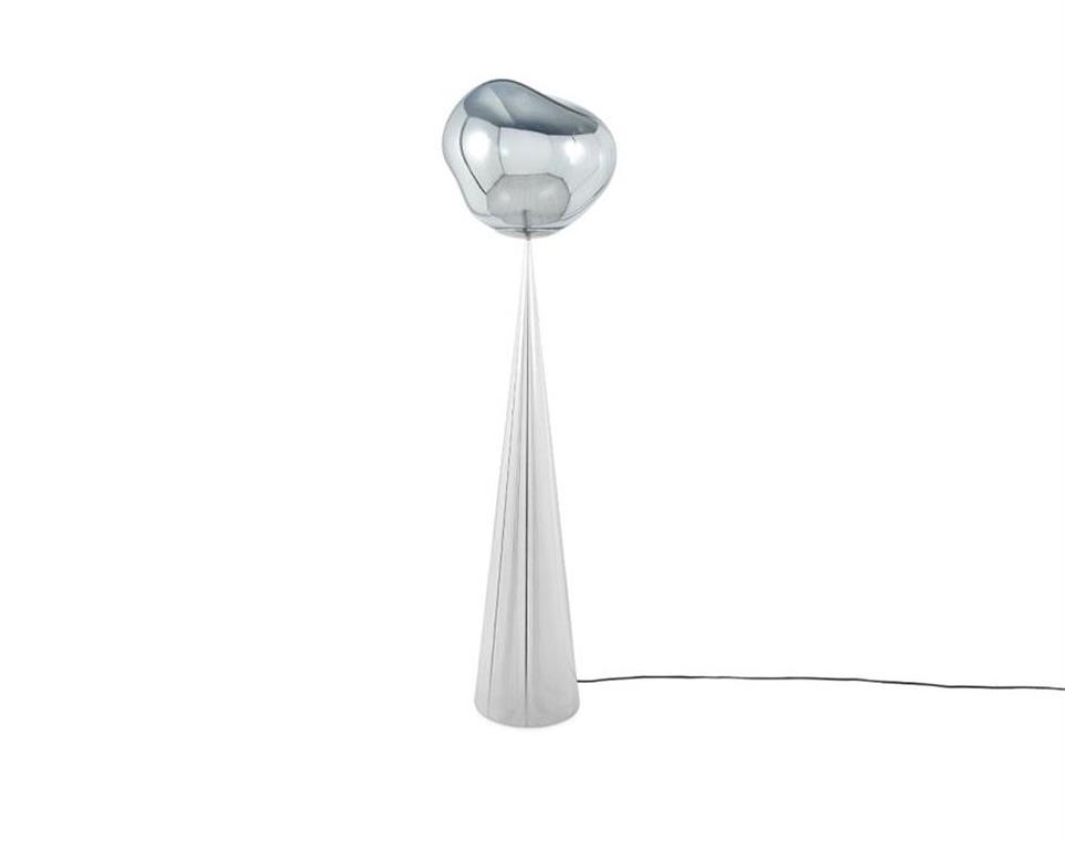 Tom Dixon MELT shade sitting atop a cone-shaped base. The ultimate designer floor light.Extra Info: Archetypical spherical silhouette allows for use in any space / Energy-Efficient LED Lighting / Comes with a standard LED ring (3000K), which mimics bright daylight / Dimmable foot switch