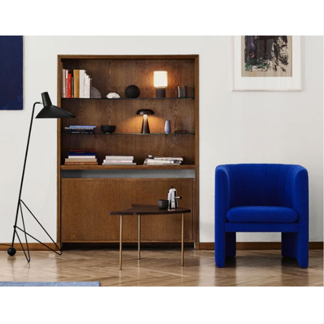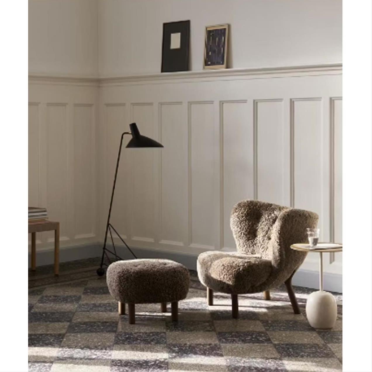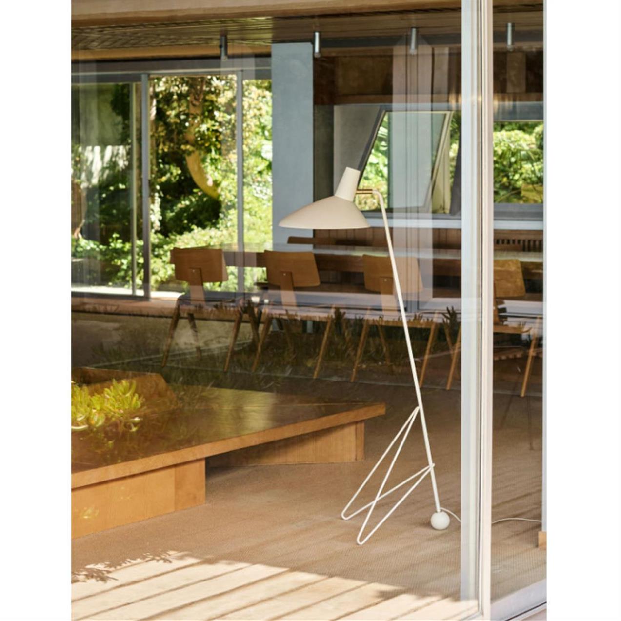 A floor lamp built from lacquered steel, the Tripod strikes a delicate balance between the stark simplicity of its design and the softness injected by the curved edges of its base. For easy articulation and a more precise light, a swivel joint has been developed – a feature now seen across the entire Tripod range. Alongside this, the introduction of a new finish, white with brass details, accentuates the graceful proportions of the original design.