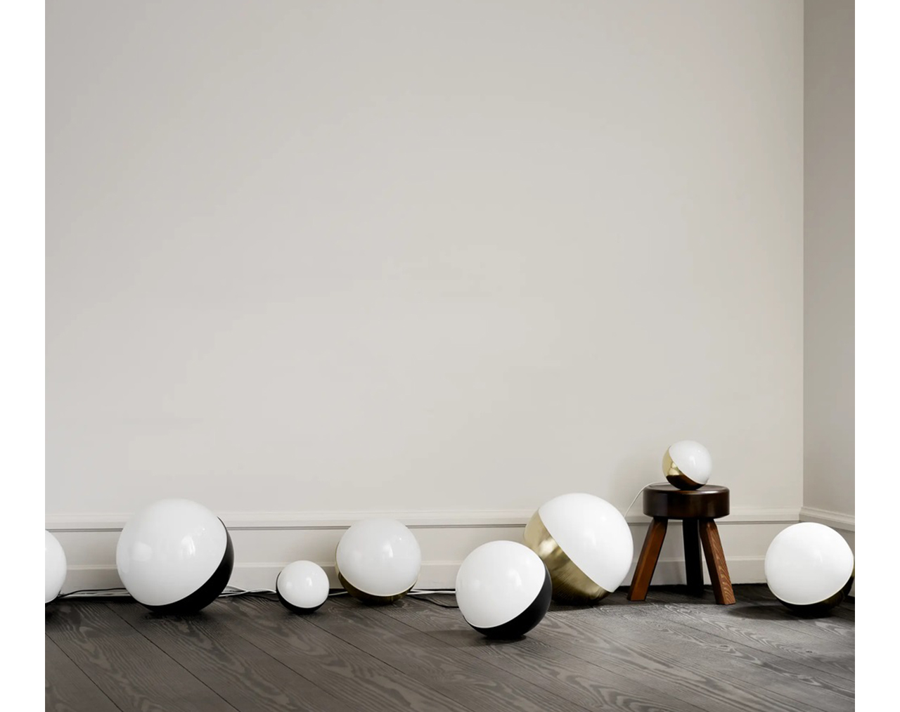 The VL Studio family derives from a lamp designed by architect Vilhelm Lauritzen for Radiohuset (The Radio House, headquarters of the Danish Broadcasting Corporation) in Copenhagen in the 1940s. The name ‘Studio’ was chosen because some of the lamps were used outside the studio to indicate – with either a red or green light – whether recording was taking place. Vilhelm Lauritzen was the architect behind Radiohuset, which was inaugurated in his functionalist design in 1945. Radiohuset is a ‘gesamtkunstwerk’ – like most of Lauritzen’s buildings – meaning that he designed all the interiors and every detail of the building for the project. When developing Radiohuset, Lauritzen designed a broad collection of lamps in close collaboration with Louis Poulsen. For this project, Lauritzen created the Studio lamp, the VL 38 Table lamp (VL38), the Radiohus Pendant (VL45) and the VL Ring Crown lamps. After the creation of the lamps in the 1940s, they were produced by Louis Poulsen. However, over the years, they were all taken out of production. The VL45 (Radiohus Pendant) and the VL38 (Table lamp originally from the interior of the building) were reintroduced in 2016, the VL Ring Crown in 2019, and most recently the VL Studio lamp in 2022. The VL Studio lamp is closely related to the Radiohus Pendant; both create a diffused light through opaline glass which provides a pleasant general light around the lamp. Based on the design and materials of the lamp head from the original wall lamp, the VL Studio Table/Floor lamp was introduced in 2022. It is made of polished brass that is slightly brushed with glossy white, triple-layered, mouth-blown opal glass. The VL Studio Table/Floor lamp also comes in a matt black version for a more graphical, clean expression compared to the soft, warm look of the polished brass version. The table lamp series is available in three sizes that can be positioned on the ground as floor lamps or as table lamps as required. The small size Ø150 has the same diameter as the original VL Studio Wall lamp and can easily be placed anywhere, the middle size Ø250 is perfect as a table lamp and the larger version Ø320 is ideal for both table and floor use. The VL Studio Table/Floor lamp brings a modern touch and warm ambience to any interior with its simple aesthetic and exquisite materials.