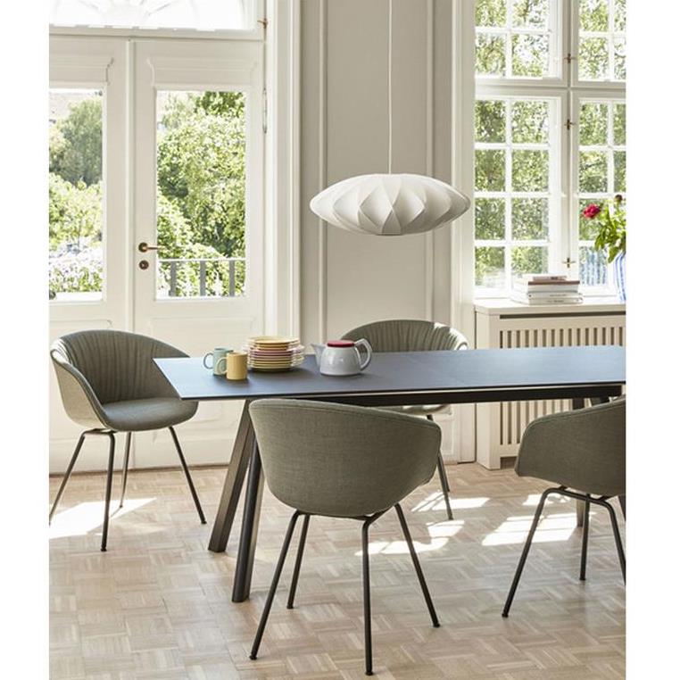 Designed by George Nelson in 1947, the Nelson Bubble Pendant Lamp series comprises a range of pendant lighting solutions with varying spherical silhouettes. Inspired by a set of silk-covered Swedish hanging lamps, the lamps’ organic shapes appear to delicately float overhead, offering a soft and atmospheric light. Available in Ball, Pear, Apple, Cigar, Saucer, Lantern and Propeller variants in different sizes.
