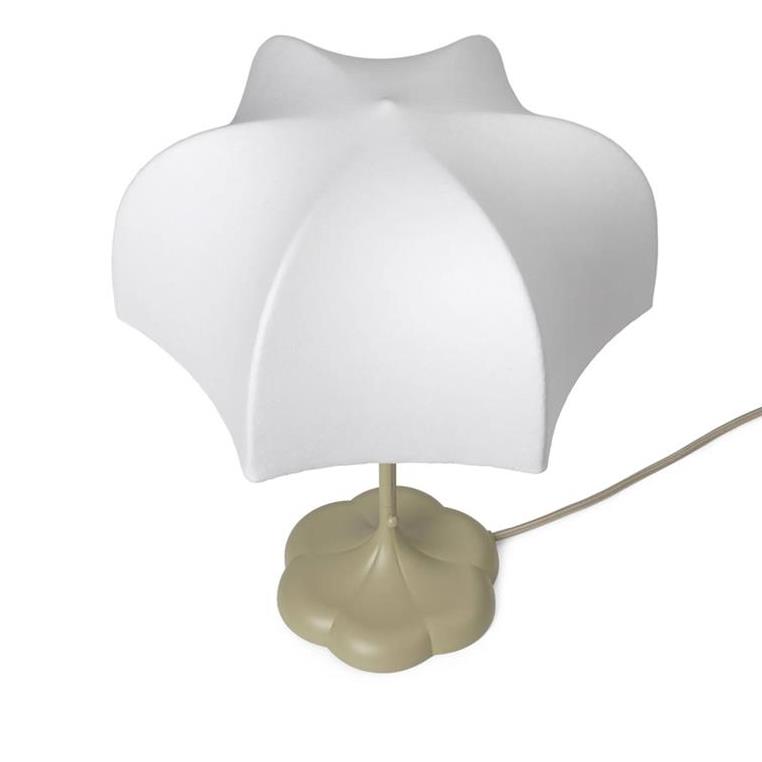 Drawing inspiration from the opulent details found in Baroque art and architecture, the Poem Table Lamp has a romantic and elegant expression. Made through an intricate process where liquid tissue is sprayed over the lamp’s casted aluminium base, the result is a translucent shade that artfully stretches over intricate steel arches, ensuring that the lamp emits a soft, diffused light while resembling a delicate flower. The non-woven polymer shade will beautifully patinate over time, giving it a unique appearance. Place the Poem on your bedside table or let it elegantly illuminate your desk.