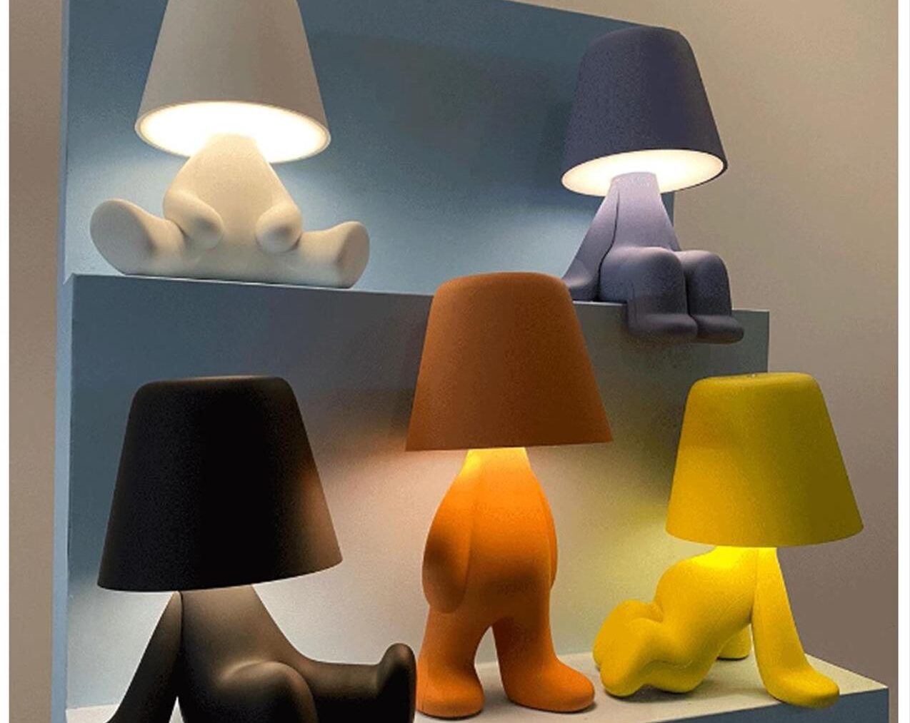 The Golden Brothers family is expanding! Meet the Sweet Brothers JOE and his brothers now in different soft touch colours. Find them in black, white, light blue, yellow and terracotta, assuming different postures. They create an animated landscape characterizing the table and every corner of the house. This family of portable rechargeable battery-operated LED lamps is equipped with a soft touch switch.