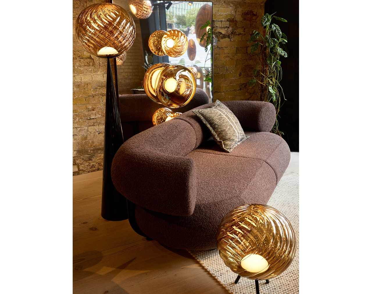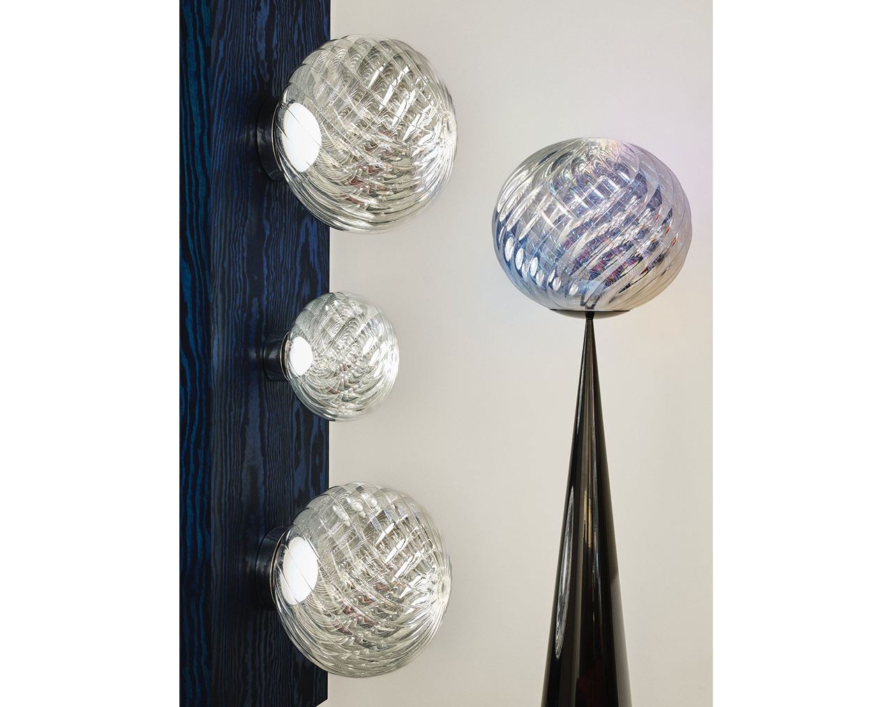 The WHIRL Surface Light in gold is a striking wall light inspired by the op-art movement, designed to create mesmerising mirrored reflections and abstract patterns through its spiral form. Crafted from lightweight yet durable polycarbonate, the WHIRL shade is produced using advanced injection blow moulding and vacuum metallisation. Available in gold or silver finishes, it is compatible with Edison Screw (ES) or LED pendant fittings, making it versatile across different settings and giving multiple lighting options.